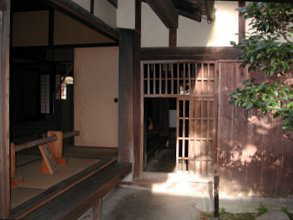 玄関脇の庭から宣長の書斎(2階)を望みます。